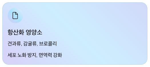 - 견과류, 감귤류, 브로콜리 섭취 권장