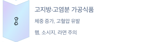 - 인스턴트식품, 햄, 소시지, 라면은 주의