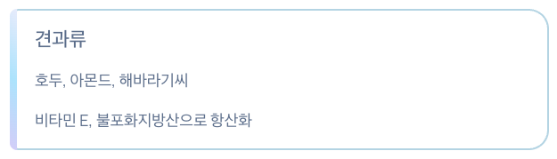 - 견과류, 감귤류, 브로콜리 섭취 권장