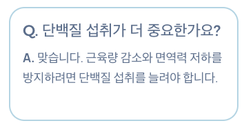 A. 맞습니다. 근육량 감소와 면역력 저하를 방지하려면 단백질 섭취를 늘려야 합니다.
