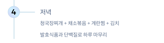 저녁: 청국장찌개 + 채소볶음 + 계란찜 + 김치