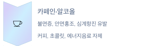 - 커피, 초콜릿, 에너지음료 등 섭취 자제 필요