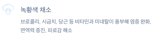 비타민과 미네랄이 풍부한 녹황색 채소는 체내 염증을 줄이고 면역력을 높이며 갱년기 피로감 해소에 효과적입니다.