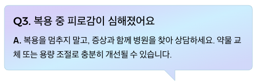 Q3. 복용 중 피로감이 심해졌어요. 계속 복용해야 하나요?