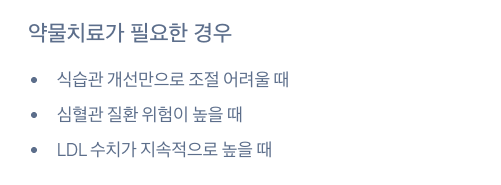 - 고지혈증은 대부분 만성 질환이므로 장기적인 관리 필요