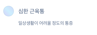 - 통증은 주로 양쪽 허벅지, 어깨, 팔에 대칭적으로 나타남