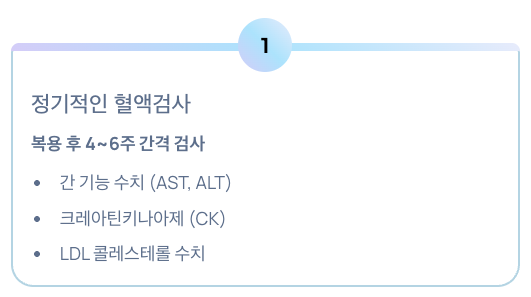 - 드물게 횡문근융해증이라는 심각한 부작용으로 이어질 수 있으므로 주의