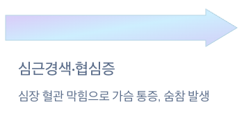 심장으로 가는 혈관이 막히거나 좁아지며 심장근육으로 혈류가 차단