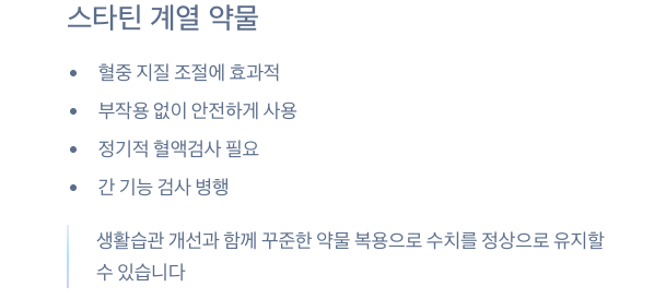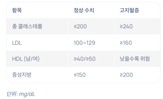 💡 고지혈증은 합병증이 생기기 전까지 증상이 거의 없기 때문에, 지속적인 수치 관리와 예방이 중요합니다.