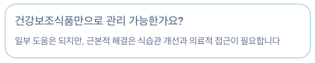 Q4. 건강보조식품만으로 고지혈증 관리가 가능한가요?