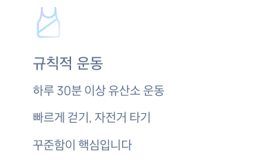 - 하루 30분 이상 유산소 운동: 빠르게 걷기, 자전거 타기 등