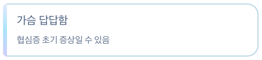 - 가슴 답답함, 가슴 통증 (협심증 초기 증상)