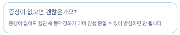 A. 증상이 없어도 혈관 속에서 이미 동맥경화가 진행 중일 수 있어 방심하면 안 됩니다.