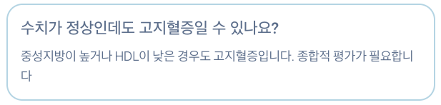 Q2. 콜레스테롤 수치가 정상인데도 고지혈증일 수 있나요?