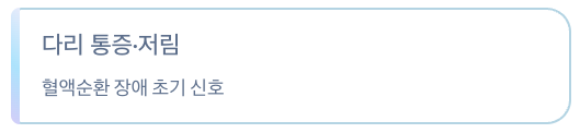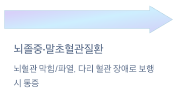 - 다리 혈관이 막히면 보행 시 통증 및 저림 증상 발생