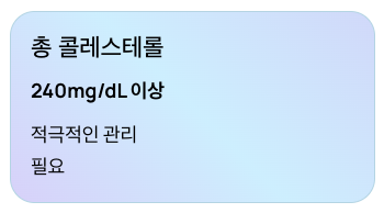 - LDL-C: 160mg/dL 이상 (고위험군은 100mg/dL 이상)