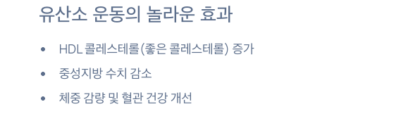 유산소 운동은 HDL 콜레스테롤(좋은 콜레스테롤)을 높이고 중성지방을 낮추는 효과가 있습니다.
