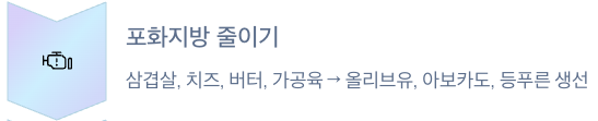 - 대체 음식: 올리브유, 아보카도, 생선(오메가-3)
