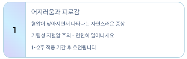 • 기립성 저혈압 주의 → 갑자기 일어설 때 어지러움 발생 가능