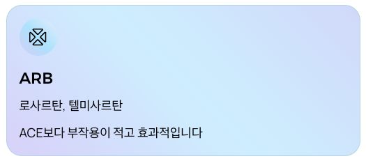 • 기전: ACE보다 부작용 적고 혈압 조절 탁월
