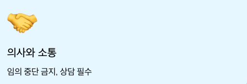 • 단, 모든 조치는 반드시 의사와 상담 후 결정해야 함