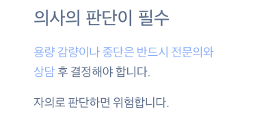 • 반드시 의사와 상담 후 용량 조절 또는 약 변경을 해야 합니다.