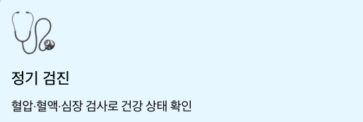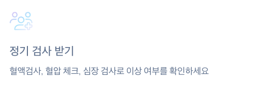 💡 정기적인 혈액검사, 혈압 체크, 심장 검사를 통해 이상 여부를 조기에 확인하세요.