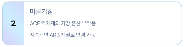 • 기침이 지속되면 ARB 계열 약물로 변경 고려 가능
