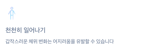 • 충분한 수분 섭취 + 갑작스러운 체위 변화 주의
