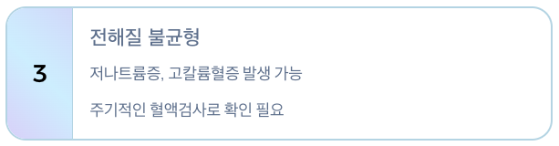 • 주기적 혈액검사로 전해질 수치 확인 필요