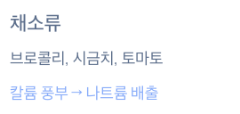 | 채소류 | 브로콜리, 시금치, 토마토 | 칼륨 풍부 → 나트륨 배출 |