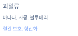 | 과일류 | 바나나, 자몽, 블루베리 | 혈관 보호, 항산화 |