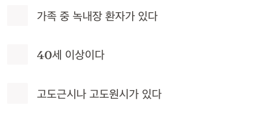 다음 중 3가지 이상에 해당한다면 정기 검진이 반드시 필요합니다: