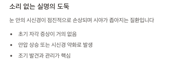 - 정기적인 안과 검진 (최소 1년 1회)
