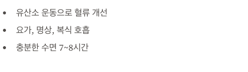 - 흡연과 과도한 음주는 혈관 수축을 유도하므로 반드시 피해야 합니다.