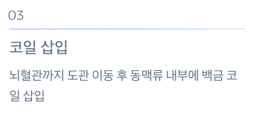 - 뇌혈관까지 미세 도관을 이동시켜 동맥류 내부에 코일 삽입