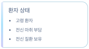 - 고령 환자 또는 전신 마취가 부담되는 환자