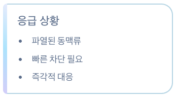 - 파열된 동맥류로 빠른 혈류 차단이 필요한 경우