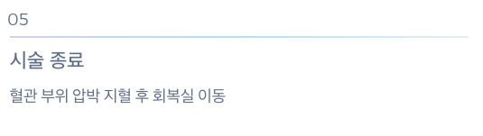 - 시술 종료 후 혈관 부위 압박 및 지혈