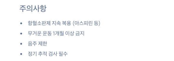 - 항혈소판제 복용(아스피린 등) 지속 필요