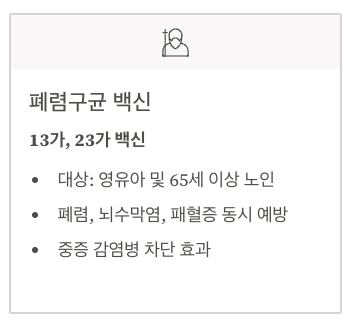 - 특징: 폐렴뿐 아니라 뇌수막염, 패혈증 예방