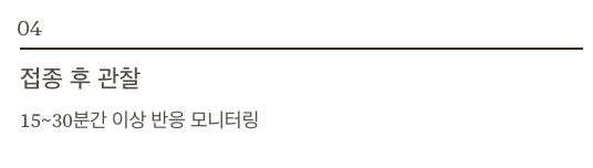 - 접종 후 15~30분간 이상 반응 여부 관찰 필요