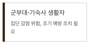 - 확진자와 접촉한 가족이나 군부대 구성원 등은