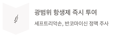 - 즉시 항생제 정맥 투여(IV)