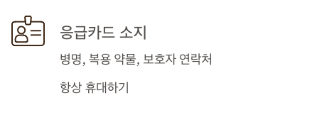 - 응급카드 소지: 병명, 약물, 보호자 연락처 등