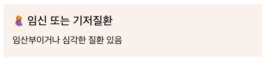 - 환자가 임신 중이거나 심각한 기저질환이 있는 경우