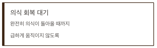 - 의식이 돌아오더라도 당분간 휴식을 취하도록 유도하세요.