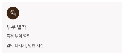 - 부분 발작: 특정 부위 떨림, 입맛 다시기, 멍한 시선