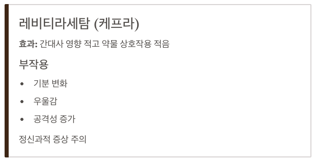 • 장점: 다양한 발작 형태에 효과적
