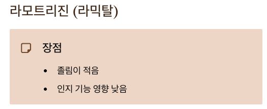 • 장점: 졸림이 적고 인지 기능에 미치는 영향이 비교적 낮음